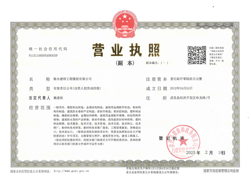 衡水建碩工程橡膠有限公司座落于衡水市濱湖新區(qū),占地面積50000平方米,注冊資金壹億零捌拾萬元整,是生產(chǎn)橡膠支座、盆式支座、充氣芯模、伸縮裝置、止水帶的專業(yè)廠家。公司始建于九十年代,經(jīng)過近二十年的發(fā)展壯大,現(xiàn)有員工300多人,其中高級技術(shù)人員45人,高級技工103人。