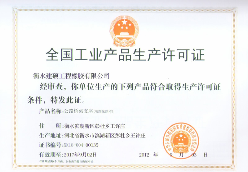 公司擁有一批高素質(zhì)的管理、科技人才和一直精干的營銷、服務(wù)隊伍,生產(chǎn)設(shè)備先進,制做工藝合理,檢測設(shè)備精良,檢測手段完善,公司已通過ISO9001:2000質(zhì)量管理體系認證,取得了公司橋梁支座產(chǎn)品生產(chǎn)許可證和橡膠密封制品產(chǎn)品生產(chǎn)許可證...